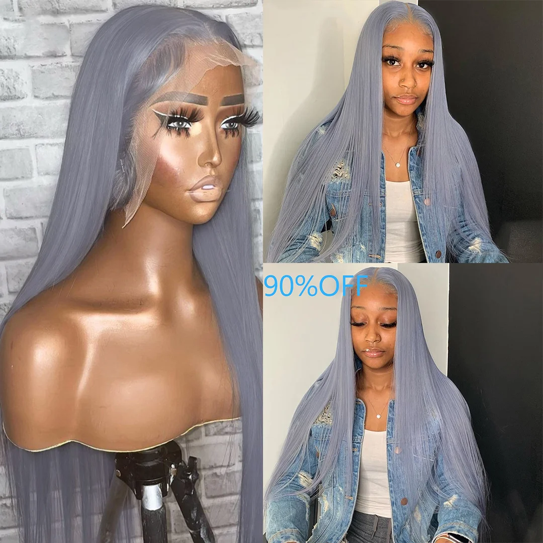 360 lace wig straight hair silver gray 100% human hair pre-drawn transparent lace