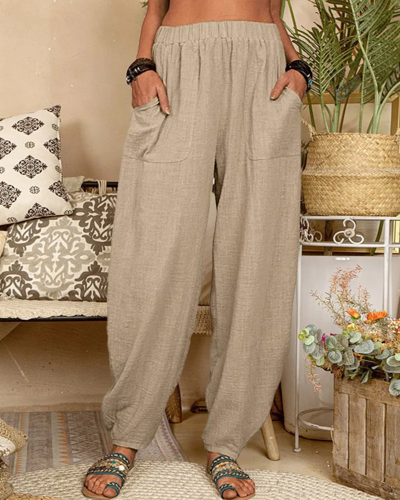Long Elastic Loose Casual Trousers Harem Pants Pockets Wide Leg Pants