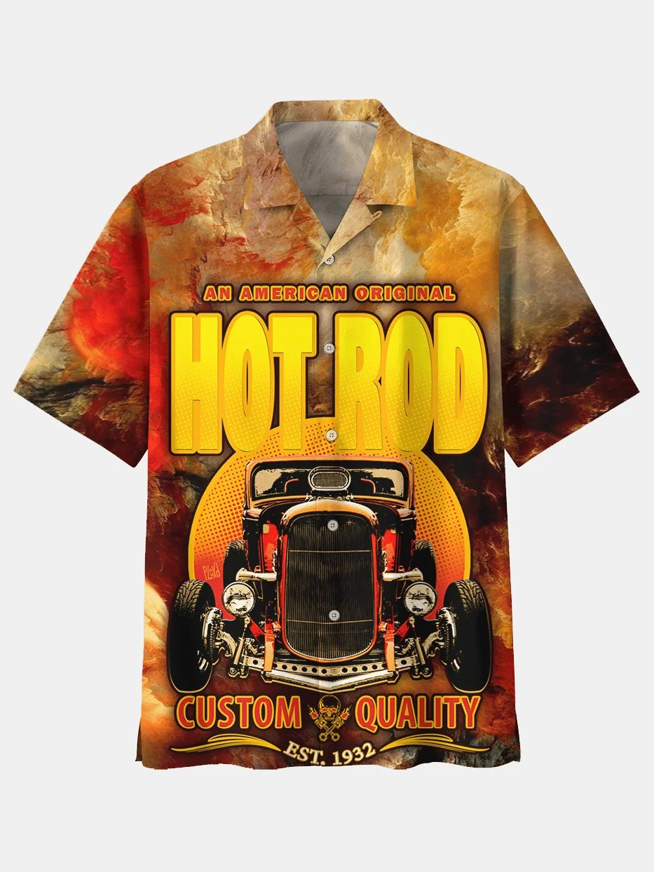 Men's Casual Vintage Car Gradient Casual Cuban Collar Shirt
