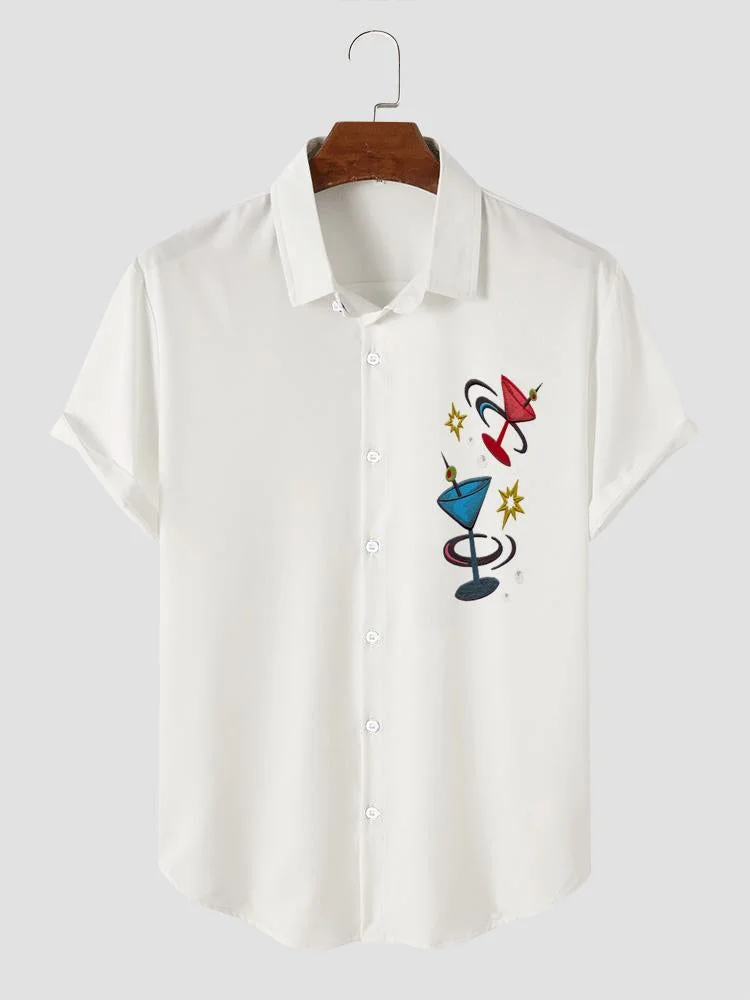 Men's Wine Glass Print Simple Daily Dating Short Sleeve Shirt