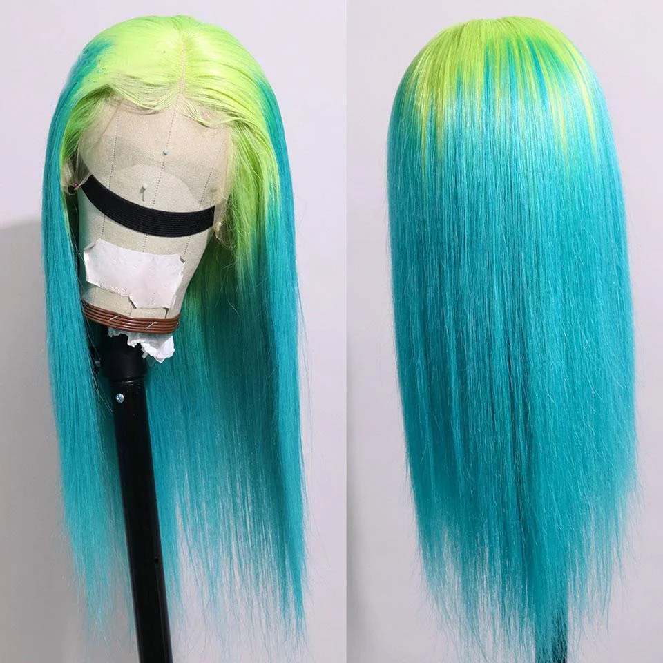 Preplucked Full Lace Human Hair Wigs Green Blue 13x6 Straight Lace Front Wig Remy Pink Orange Ombre Human Hair Wig