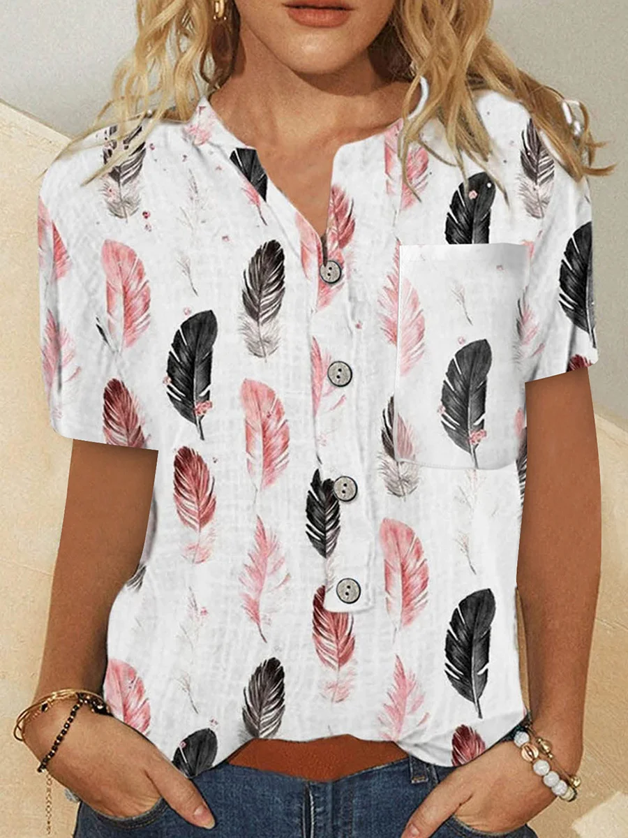 Short Sleeves Printed Women Fashion Blouses