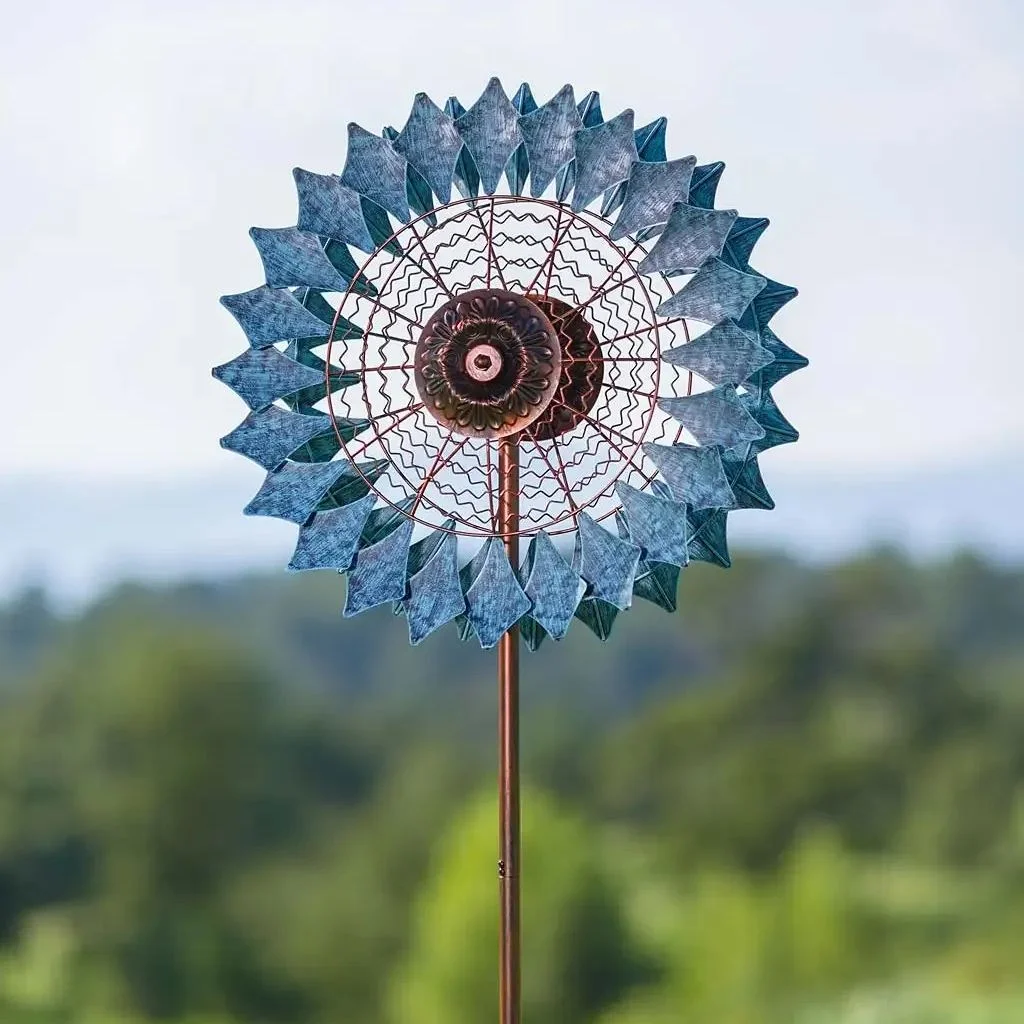 Bi-directional rotors create a mesmerizing display anywhere in your yard. An embossed metal center is joined by wavy spokes and kite-shaped "petals", making a stunning piece of kinetic art for your landscape.