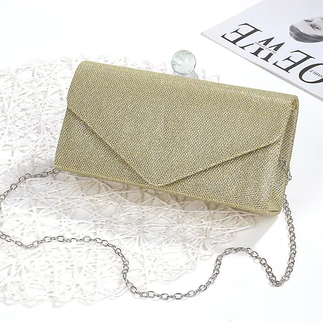 Women's 2022 Chain Bag Evening Bag Polyester Chain Plain Wedding Party Silver Black Gold Champagne