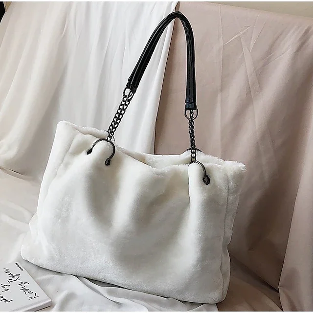 Women's Fluffy Bag Plush Bag Shoulder Bag Handbag Chiffon Zipper Solid Color Shopping Daily White Black Blue Gray